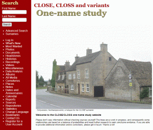 When Google was still something of a novelty, one of the first things I used it for was to search for my maternal grandmother’s maiden name. Up came a link to the Guild of One-Name Studies, which led to a very useful exchange of information – both the surname researcher and I learning new things about the family from one another. Aha, thought I, perhaps I could become an official one-namer for the surname CLOSE … and one thing led to another.